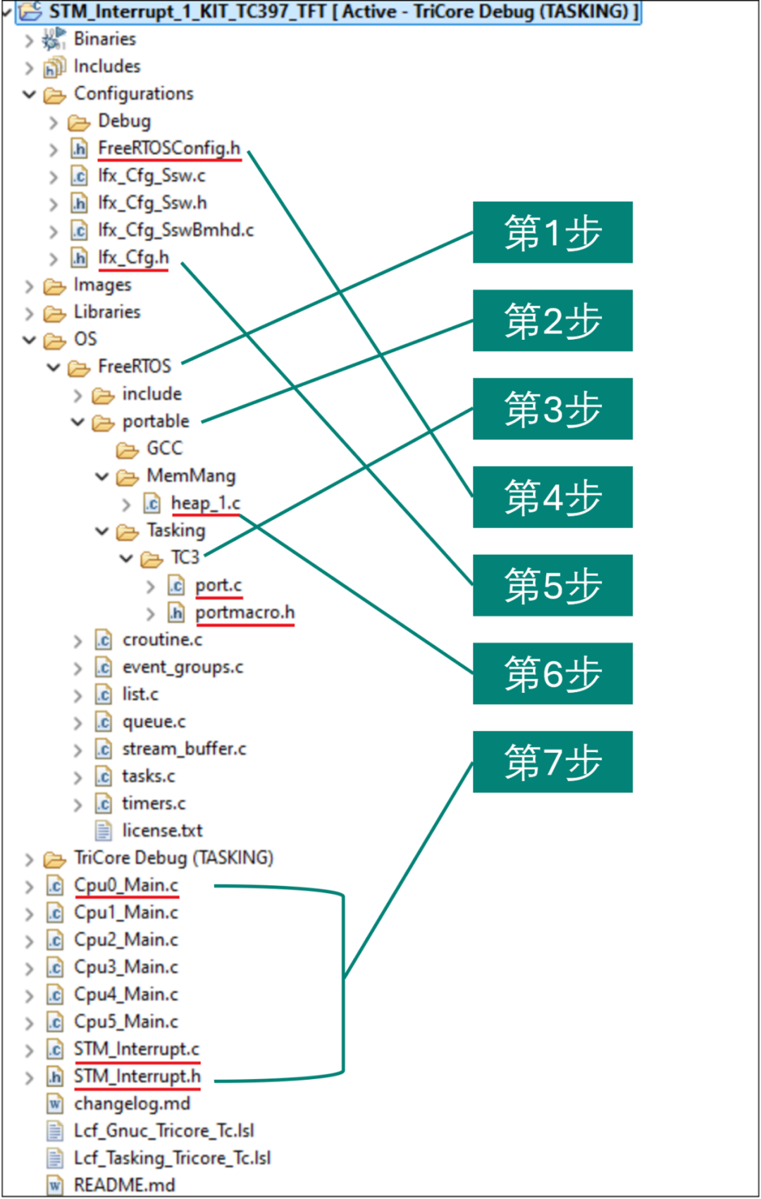 在 Tasking 文件夹中移除 ARM_CM4F 文件夹,创建一个名为 TC3 的新文件夹,该文件夹将包含两个文件:port.c 和 portmacro.h。( 下载链接 )