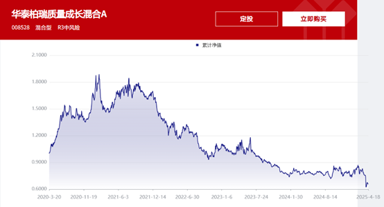 截至2025年4月18日(下同),华泰柏瑞质量成长A近3年净值下跌50.23%,跑输业绩基准超过50个百分点,同类排名2855/2897。近1年以来,该基金累计亏损达到17.9%,跑输业绩比较基准超过20个百分点。