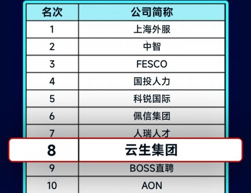 4月18日,人力资源知名媒体 “第一资源”发布了“2025第一资源人力资源服务机构100强”,云生集团排名第8位,连续三年入选该榜单的TOP 10。