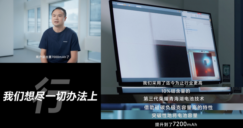 根据发布的视频内容来看,荣耀GT Pro原本的电池容量规划是6800mAh,但通过京东与荣耀GT系列用户进行面对面交流后,荣耀GT Pro产品经理决定听取用户建议,直接上“7”,一举来到7200mAh。但旗舰手机内部寸土寸金,无法仅仅靠空间来换取容量。为此,荣耀研发团队进行了深入探索,采用了迄今为止行业最高10%硅含量的第三代荣耀青海湖电池技术。最终借助硅碳负极克容量高的特性,突破性地将电池容量提升到了7200mAh,成为了同档电池容量最大的手机。