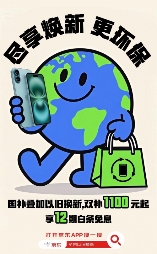 在换新新机时,以旧换新的方式不仅能降低入手成本,更能有效发挥环保价值。想要践行绿色焕新,京东搜索“苹果以旧换新”,即可加入绿色消费的行动中来,为地球的可持续发展贡献一份力量。