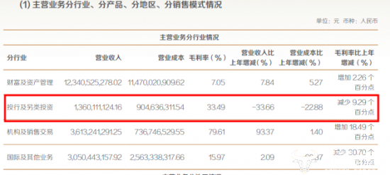 此外,东方证券财务顾问业务归属于投行及另类投资这一板块。在2024年里,东方证券投行及另类投资行业的营业收入约为13.60亿元,与上年同期相比下降了33.66%,毛利率较上年减少9.29%。