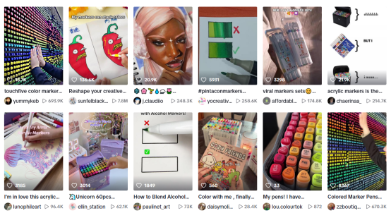 (海外社媒上网友晒出了很多马克笔开箱、涂色的短视频)