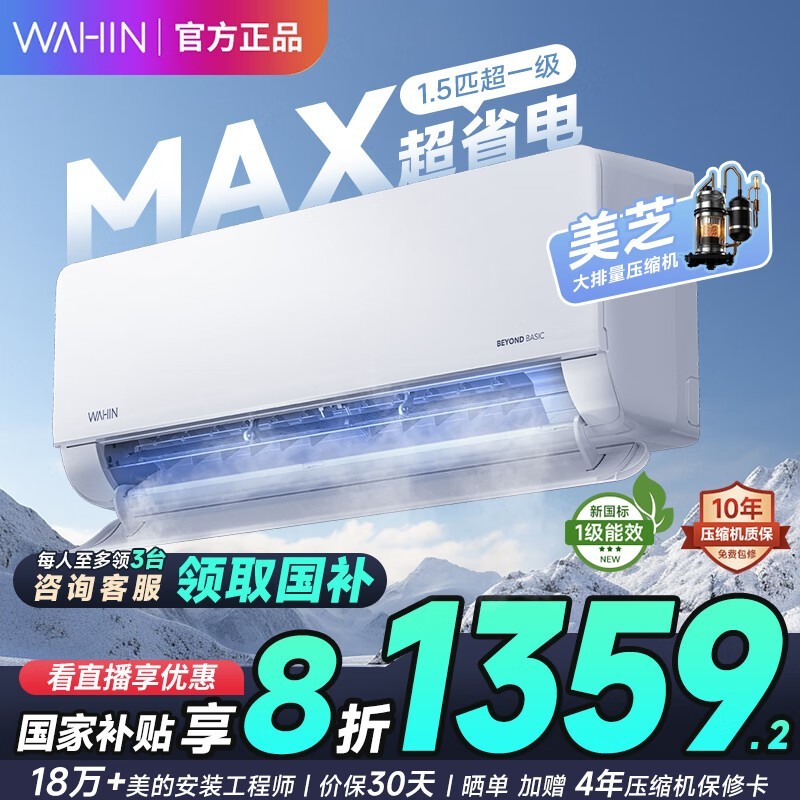 华凌1.5匹壁挂式空调新一级能效变频R32冷媒京东特惠