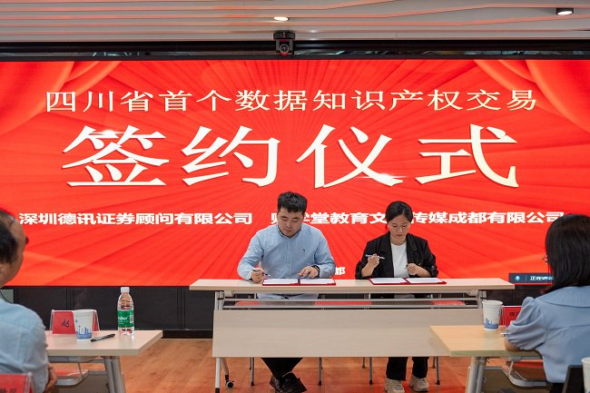 签约环节,财学堂与深圳德讯证券顾问有限公司达成合作,标志着四川首个数据知识产权交易项目落地,同时这也是全国财经教育行业数据资产化的首次成功实践。