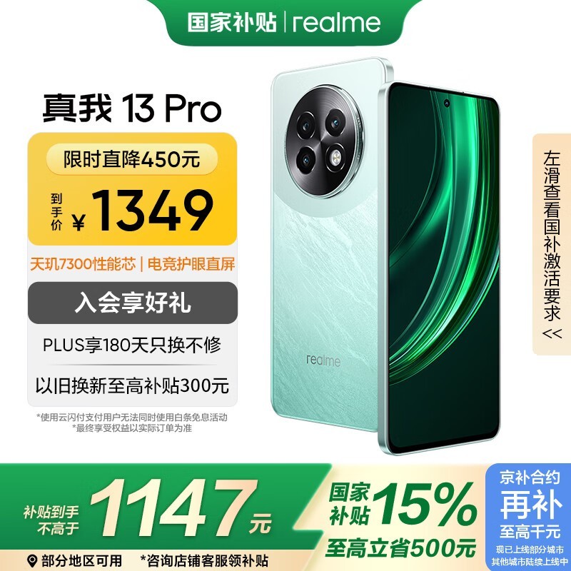 realme 13 Pro 5G手机12GB+256GB踏浪青京东1115元好价抢购