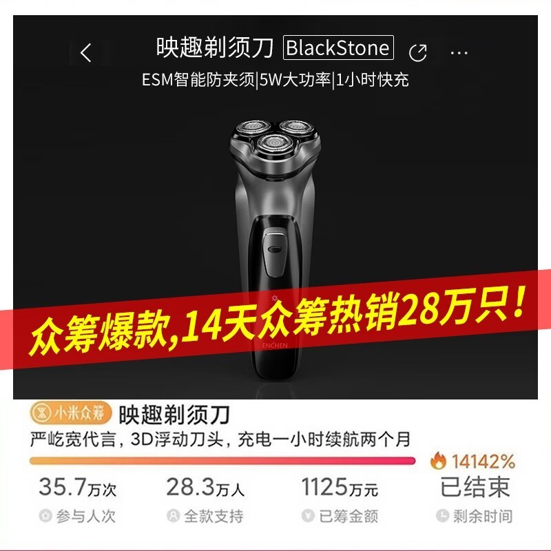 映趣电动剃须刀BlackStone-C暗夜黑款29.9元包邮