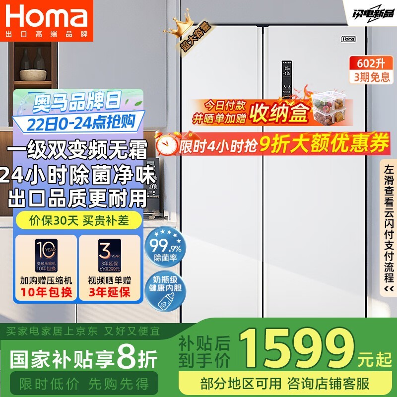 奥马BCD - 602WKH/B白色602升冰箱低价促销