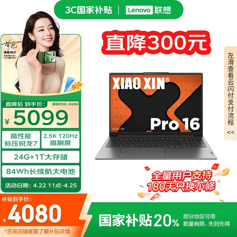 联想小新Pro16 2024款八代锐龙版轻薄本超值促销