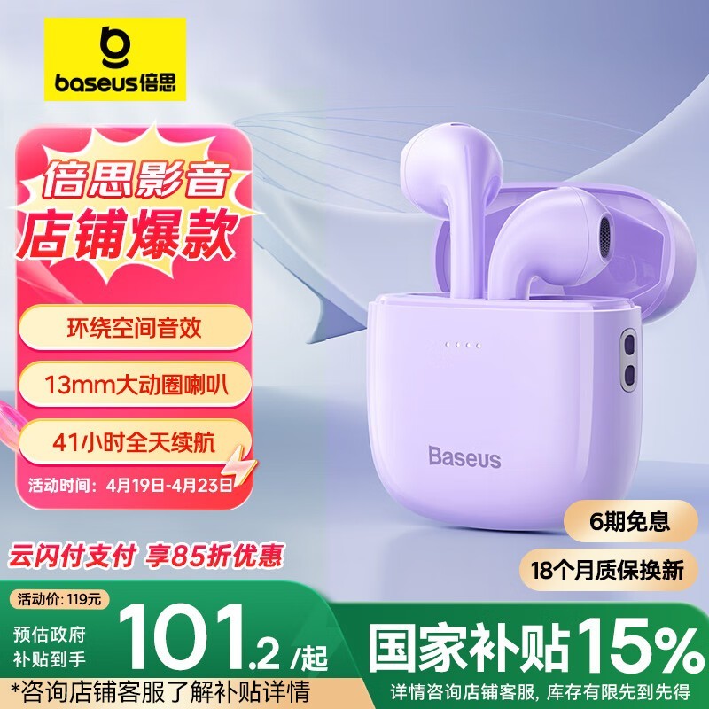 倍思W04升级版蓝牙耳机轻享好音质仅107元
