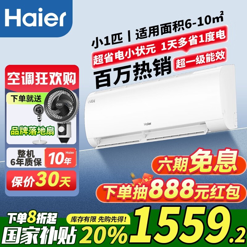 海尔小1匹一级能效空调 到手价1359元