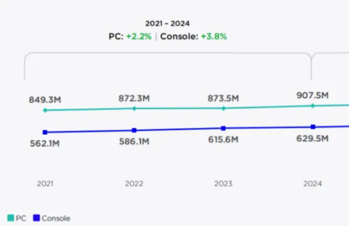 这番论调也算有其依据。根据市场调研公司Newzoo最近发布的《2025年PC与主机游戏报告》,从2021年到2024年,全球PC游戏年收入上涨了1.2%,而主机游戏年收入则下降了2.1%。PC玩家数量从2023年的8.735亿人上升至9.075亿人,同比增长3.9%,增长势头明显优于主机平台。