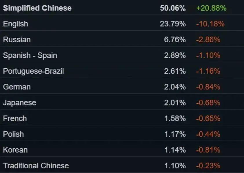 根据Valve在北欧游戏大会上分享的数据,从2019年到2024年,Steam中国地区的玩家规模增长了100%。《黑神话:悟空》成为现象级作品后,2025年2月Steam简体中文用户达到惊人的50.06%,这也是Steam中国用户占比首次突破50%。