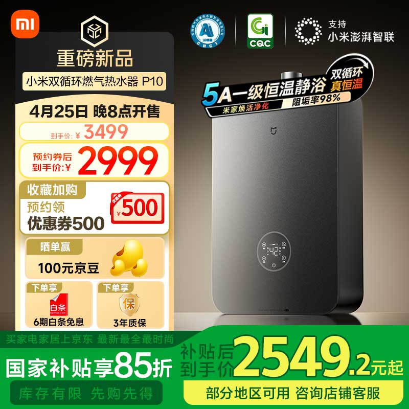 小米双循环恒温燃气热水器16升P10首发特惠