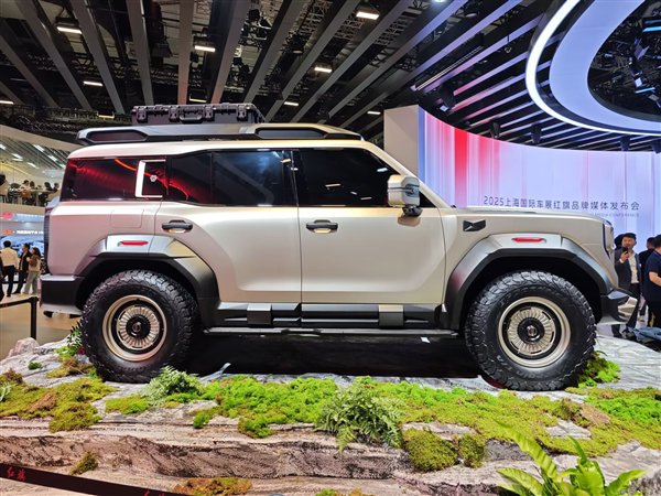 和绝大多数硬派越野车类似,红旗这款车同样采用了标准的方盒子造型,全身多使用硬朗的线条,身材十分魁梧,目测车长超过5.3米。