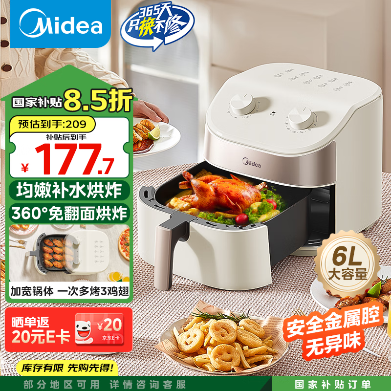美的6L空气炸锅KZE6017精准控温外酥里嫩家用自动不用翻面