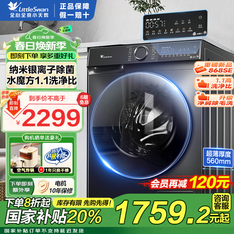小天鹅TG100V868SE洗衣机京东优惠价1399元