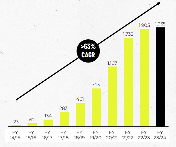 而财务数据同样印证了其迅猛的发展态势:自创立以来,其GMV一路从2300万欧元,飙升至23/24财年的19.4亿欧元;短短十年间,规模暴增84倍,年复合增长率超过63%,其增速之快堪称“奇迹”。