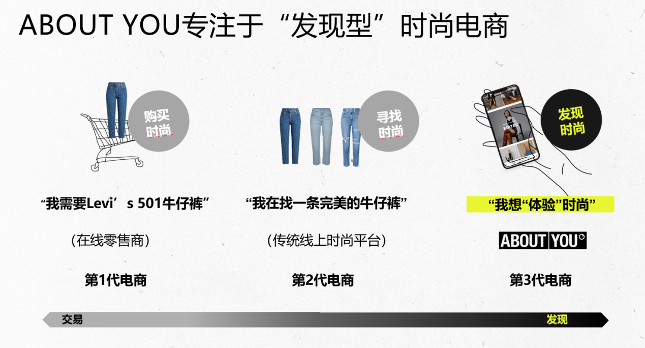 从只适合“功能性购物”的独立站电商,到兼顾消费者“搜索+比价”需求的货架电商,再到以“灵感驱动消费、重视购物体验”的内容电商,About You努力为消费者带来一个从“买时尚”和“搜索时尚”进化到“发现时尚”的新模式。这种尝试不仅填补了市场空白,更深化了时尚电商行业对用户心智的理解。