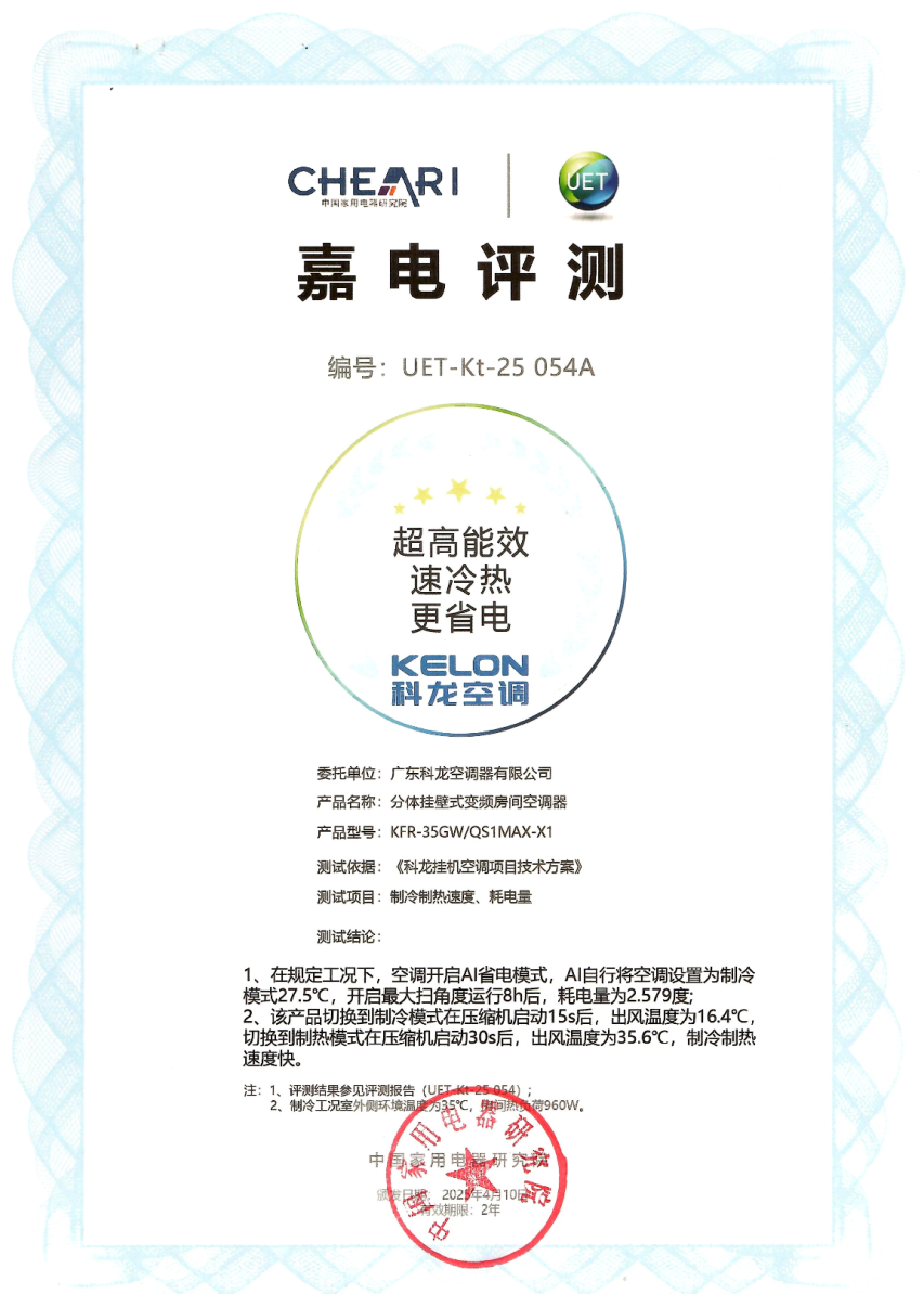 2025年4月,科龙空调联合中国家电研究院对其新品科龙静省电Max进行“真环境”测试。凭借APF值5.5、噪音低至15分贝的硬核表现,以“真省电、真静音、真速冷”三大优势成为省电静音空调领域的现象级产品。此次测评不仅验证了科龙的技术实力,也为消费者选购高性价比空调提供了权威参考。