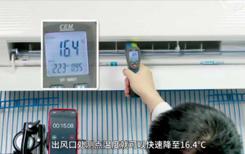 根据中家院真实环境下的实测显示,制冷模式下的出风口温度在15秒后快速降至16.4℃。在制热模式下,大约30秒出风口的温度即升至35.6℃,冷热效率大大提升。和同价位的华凌神机,小米空调相比,科龙静省电Max的速冷热速度快了一倍。