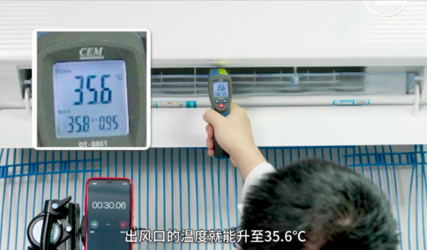 2、冷热风感体验实测,一键防直吹