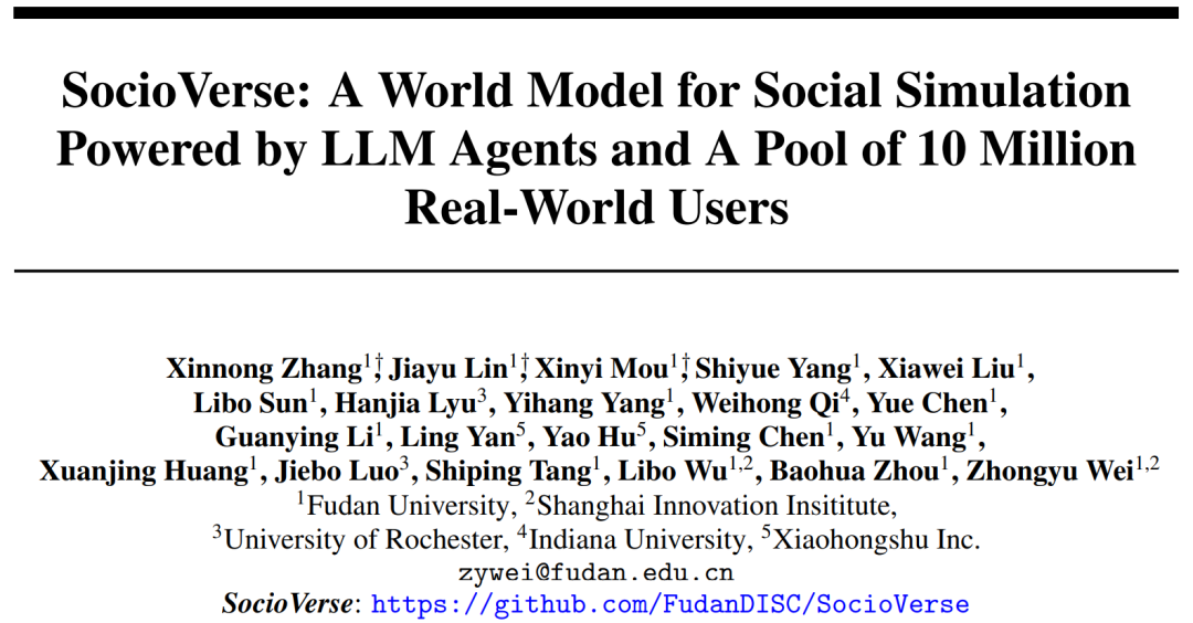 复旦大学跨学科团队联合上海创智学院、罗切斯特大学、小红书提出社会模拟的世界模型 SocioVerse,开源 100 万真实用户池,助力计算社会科学的交叉研究