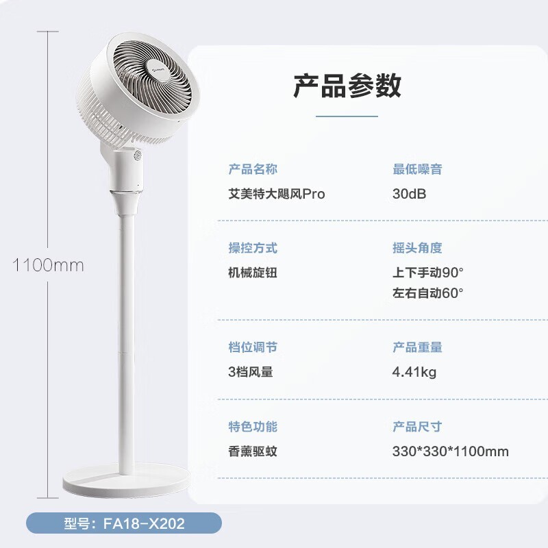 艾美特轻音节能落地扇FA18-X202强劲送风静音运转