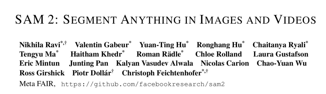 作者:Nikhila Ravi, Valentin Gabeur, Yuan-Ting Hu, Ronghang Hu, Chaitanya Ryali, Tengyu Ma, Haitham Khedr, Roman Rädle, Chloe Rolland, Laura Gustafson, Eric Mintun, Junting Pan, Kalyan Vasudev Alwala, Nicolas Carion, Chao-Yuan Wu, Ross Girshick, Piotr Dollar, Christoph Feichtenhofer