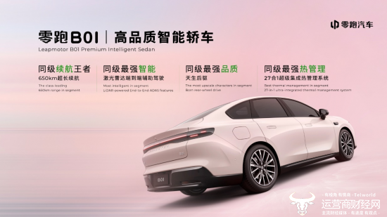 最后,零跑汽车高级副总裁曹力在发布会上透露,零跑B01拥有同级最长的650kmCLTC续航,在零跑B10的基础上又实现了进一步提升。同时,新车也将搭载激光雷达端到端辅助驾驶,且零跑B01天生后驱的特质,让每一位驾驶者都能享受超凡的出行体验。基于零跑LEAP3.5技术架构,零跑B01拥有27合1超级集成热管理系统,进一步提升产品可靠性及用户全场景工况覆盖,更智能,更节能。