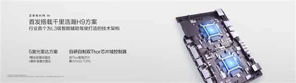 此外,该车还搭载千里浩瀚H9方案,拥有L3级驾驶能力的技术架构,全球首发双英伟达Thor芯片和5激光雷达,算力达到1400 TOPS行业最高,官方宣称“能够在国家政策允许的范围内实现L3级驾驶能力”。