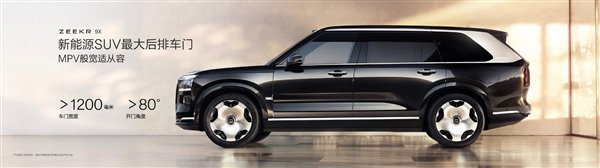 车长超5米2,车宽超2米,车高超1米8,轴距接近3米2,配备22英寸镜面锻造轮毂,同级最大,还拥有新能源SUV最大的后排车门,最大宽度超过1米,开门角度大于80度。