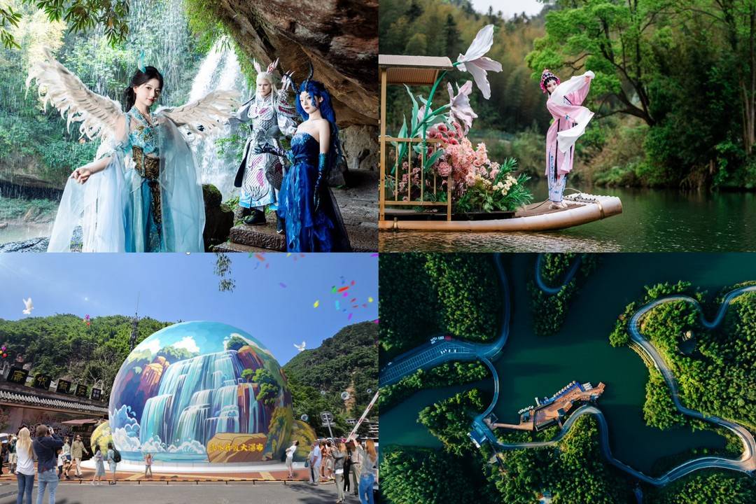 在贵州,今年五一期间,依托赤水大瀑布的天然剧场,赤水丹霞旅游区创新打造全场景神话NPC互动式旅游。在贯穿森林老人至丹霞石的1.2公里巡游路线上,游客可通过多个交互场景,解锁隐藏剧情。独具特色的国风演出,带领游客们穿越千年时光。此外,数字技术正重塑山水旅游的感知维度。赤水景区近期落成的“球幕影院",以裸眼3D技术突破传统观景局限。