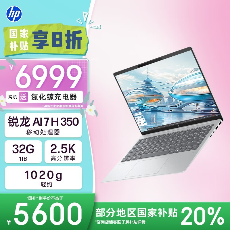 惠普星Book Pro 13轻薄本,国家补贴20%,到手5571元!