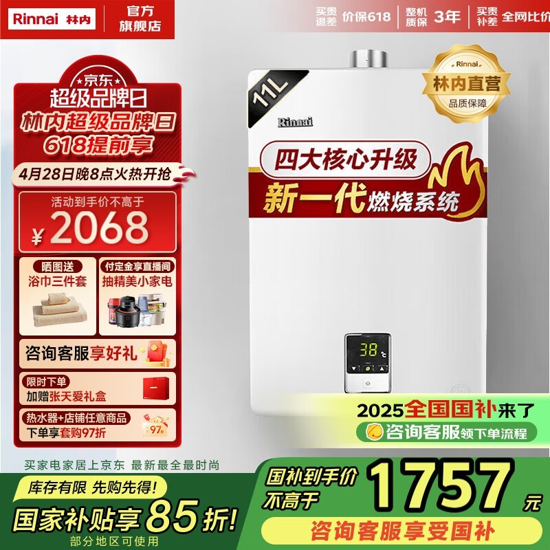 林内JSQ22 - C01燃气热水器11L优惠价1699元