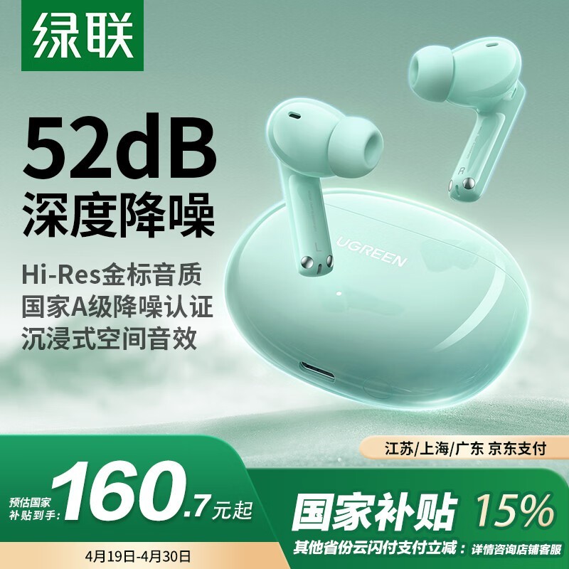 绿联HiTune T6s主动降噪蓝牙耳机京东优惠低至141元