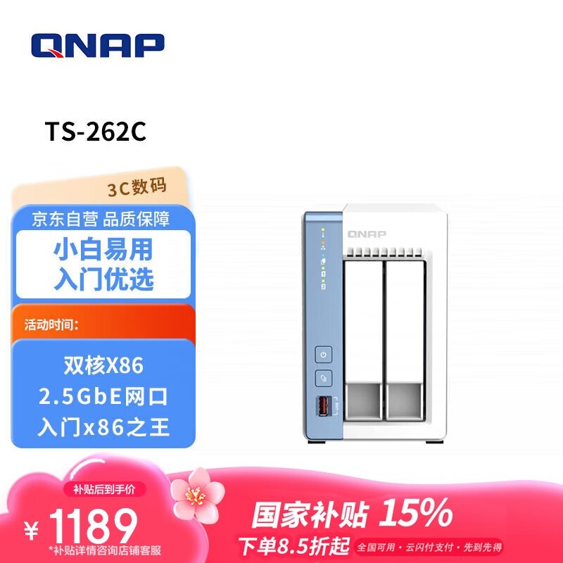 威联通TS - 262C双盘位NAS优惠价1080元