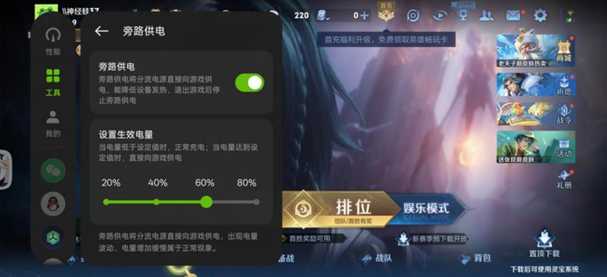 除了性能非常强悍之外,这一次真我GT7在续航表现上也着实让人惊艳,手机搭载了7200mAh的超大容量电池,并且支持了旁路供电模式,当我们设定电池电量的时候,充电器将不再为手机电池供电,而是直接为主板供电,能够减少因充电而导致的机身发热,进而保证游戏画面帧数的稳定和整体的握持体验,并且延长手机电池的寿命。