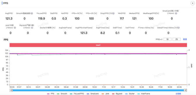 另外一款游戏我们选择了《王者荣耀》进行测试,真我GT7的游戏平均帧数达到121.3FPS,充分释放了天玑9400+的全部性能,表现优秀。