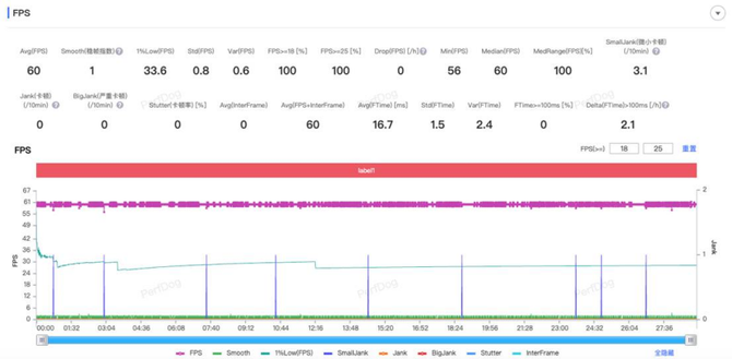 《原神》作为非常受欢迎的大型开放世界探索游戏,在内容和玩法上都是目前手游行业争相追赶的对象,经过我们的实际测试,特效拉满的条件下,大概半个小时的固定场景跑图,游戏的平均帧率达到60FPS,帧率非常稳定,真我GT7的性能表现非常优秀。