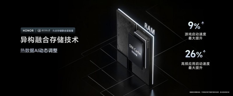 与此同时,荣耀联合华中科技大学,共同组建先进存储联合实验室,在荣耀GT Pro上首发异构融合存储技术。通过在RAM中开辟一块动态存储区域,实现热数据的AI动态调整,大大提升荣耀GT Pro重载游戏及高频应用的启动速度。