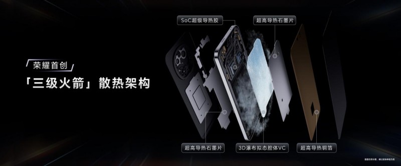 游戏表现如此出色,离不开荣耀首创的“三级火箭”散热架构。荣耀GT Pro行业首发了创新的“SoC超级导热胶”,实现了由芯片到内存的快速散热,显著提升用户重载游戏时的体验。