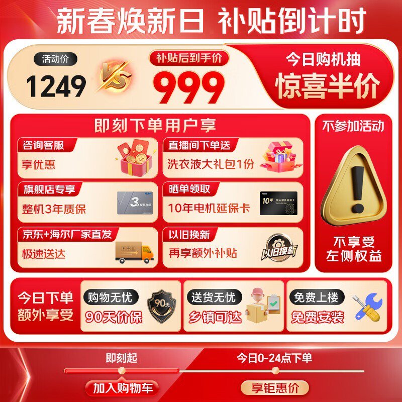 海尔XQB100-Z6088波轮洗衣机10KG超净洗仅999元