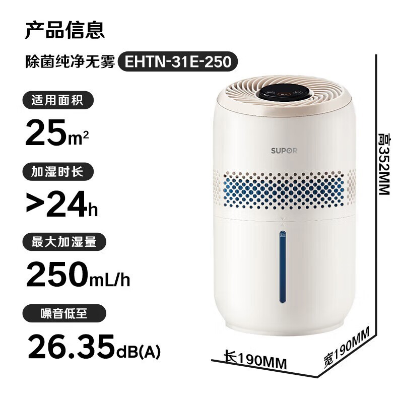 苏泊尔无雾加湿器EHTN-31E-250小型静音舒适设计促销