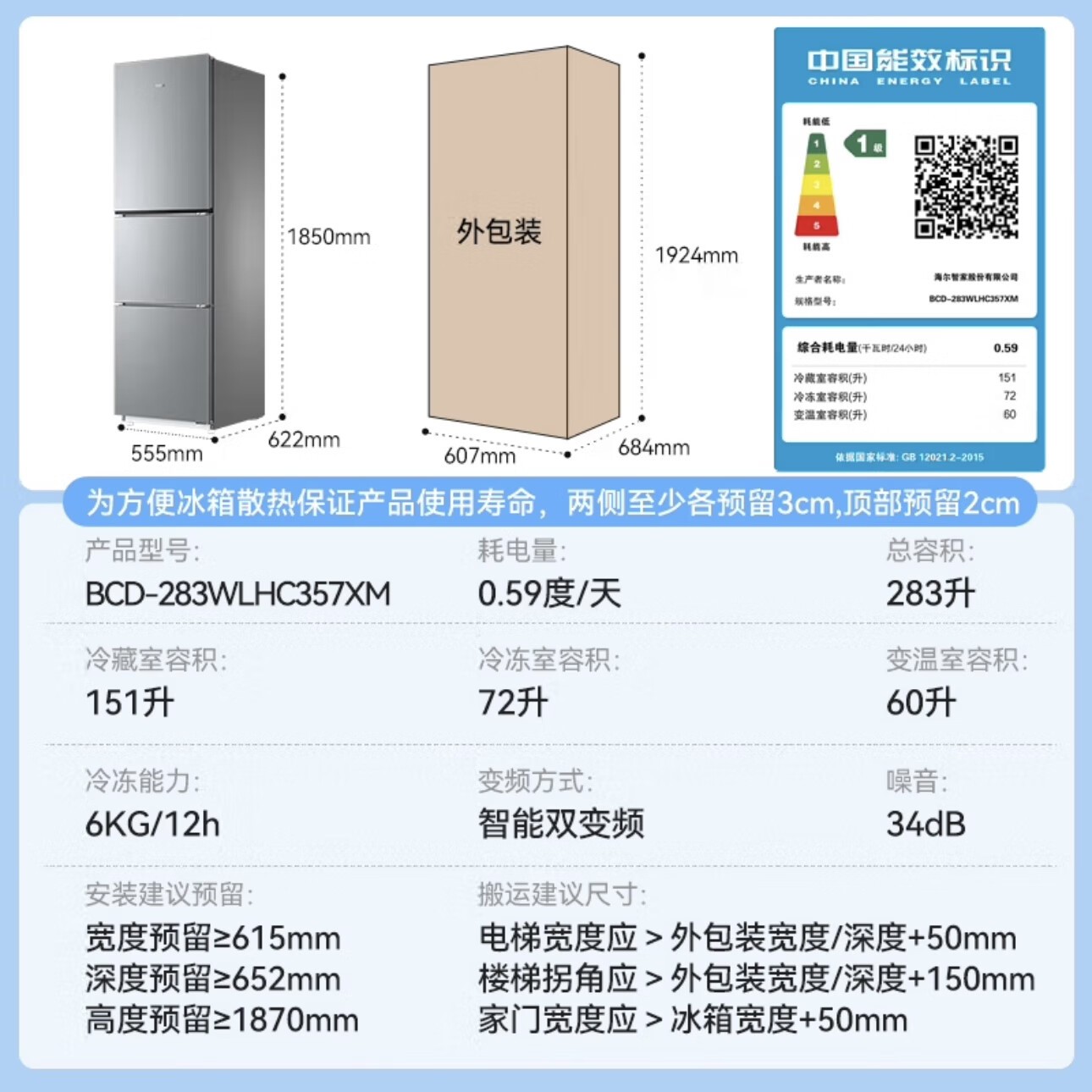 海尔BCD-283WLHC357XM冰箱超值优惠活动