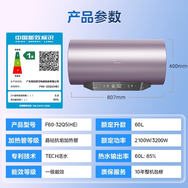 美的电热水器F60 - 32Q5(HE)京东优惠价1133元