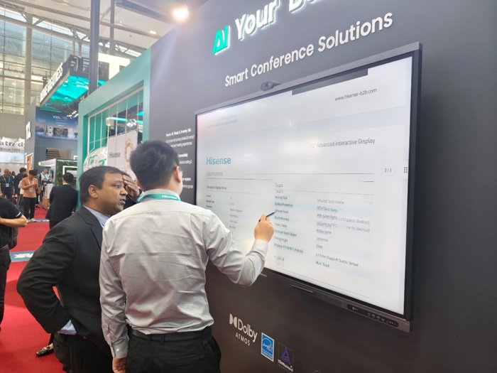 作为全球首批通过Google EDLA认证的厂商,海信商用显示以其过硬的产品质量及丰富的产品生态为业界认可。此次,海信商用显示以“AI Your Business”和“AI The Classroom”为主题,展出最新智慧触控会议产品GoBoard Pro,以及智慧触控教育产品GoBoard ,向现场客户展示海信在智慧办公及智慧教育方面的产品领先实力。