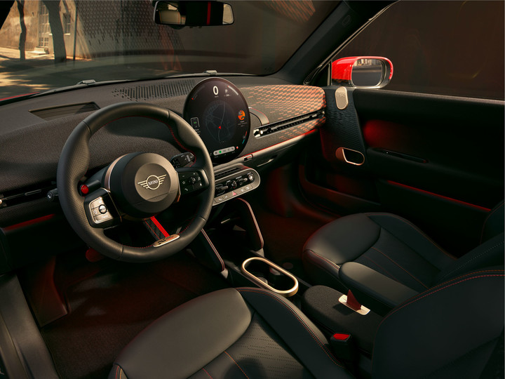 首先是它的尺寸,即便转为纯电,MINI JCW 的尺寸依旧克制,在这一点上,MINI 的与隔壁家 smart 的思路截然不同。