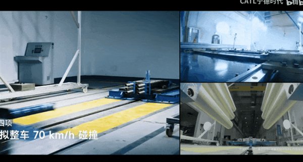 前段时间宁德时代发布了一段他们的电池在中汽中心测试的视频,里面的电池用的是 60g 的加速度,速度为 70km/h。