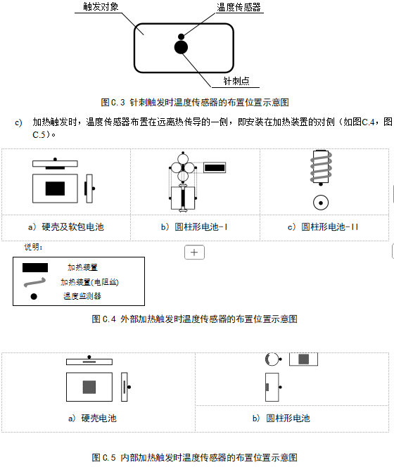 在 2020 年的 GB 38031 国标中,附录 C 里规定了热扩散的试验方法,当时推荐的是针刺以及加热来触发热失控。